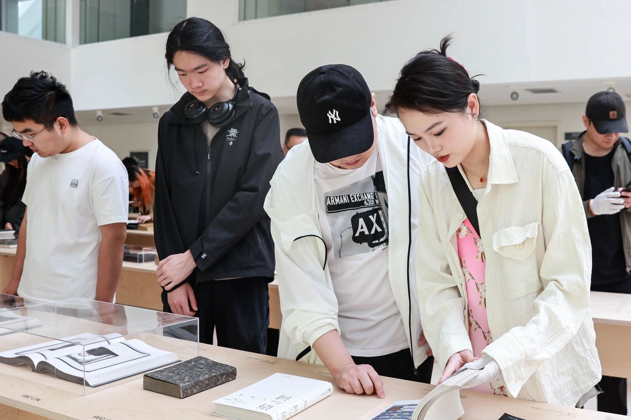 触摸纸张质感、拍照记录文字、相互探讨交流……展览引发观者频频思索。“此次展览最难得的地方在于汇集了许多绝版书籍与稀缺的设计作品,可以为师生提供系统性的观察样本。例如分类陈列同主题或同类型书籍,观众可以从中感受到不同的设计特点与多样的印刷技术,但是每种设计风格与内容意义都呈现出知行合一的形态,这是一件非常重要的事情。”参观展览的设计师李先生如是说。