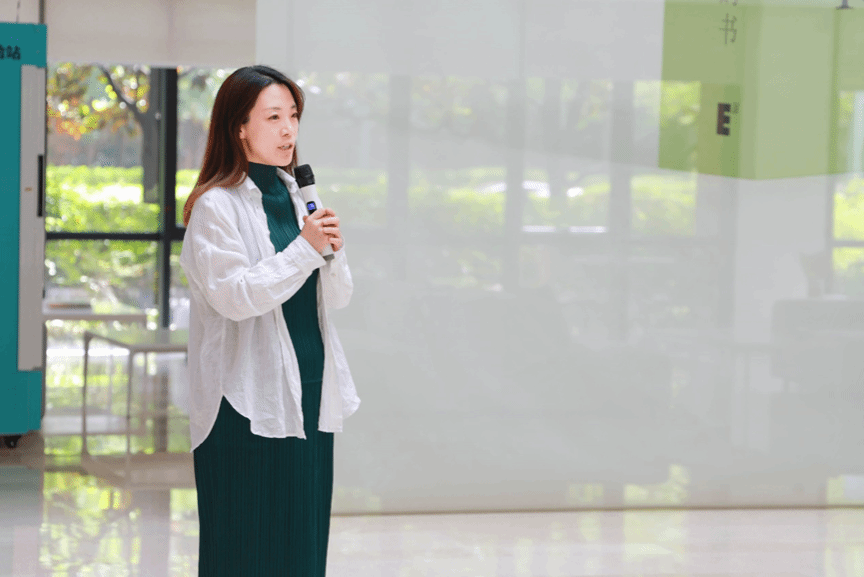 西安欧亚学院品牌传播部部长助理李娇为开幕式致辞。“从早期西安南郊的独立书店再到后来的关中大书房、汉唐书城,如此历史的积累为欧亚的阅读实践提供了丰富的沃土。欧亚始终坚持在每年的‘世界读书日’开展阅读文化节,引导学生进行阅读实践,与我们所提倡的终身教育、终身学习的目标高度一致。在欧亚,我们可以近距离感受不同时期、不同区域书籍设计的独特风格,以及设计师的多元设计理念和创意表达,这不仅是一场视觉盛宴,也是一次宝贵的学习机会。”