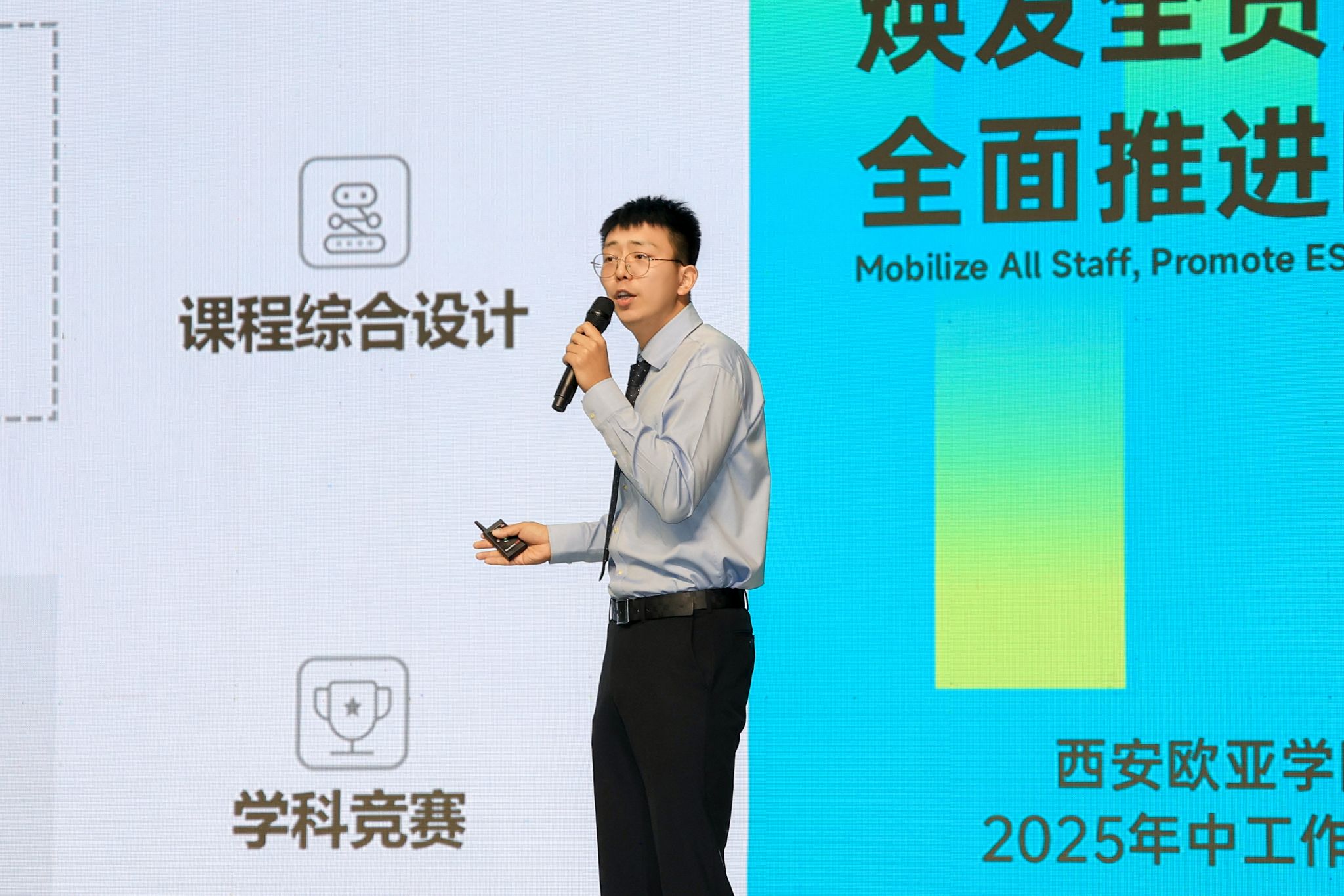 7月1日,西安欧亚学院2025年中工作会议在学校体育馆举行。会议以“焕发全员活力,全面推进ESC”为主题,聚焦学校在“十四五”时期及2025年上半年办学实践的阶段性成果,部署下半年重点任务,锚定“十四五”收官之年的关键路径。会议围绕“学生心目中的好大学”展开深入探讨,回应教育变革背景下高等教育的时代命题。学校副校长李正主持会议。会议特别邀请外部专家、顾问、学者、高校代表和雇主企业代表等共计50余人观摩,全体教职员工参加。
