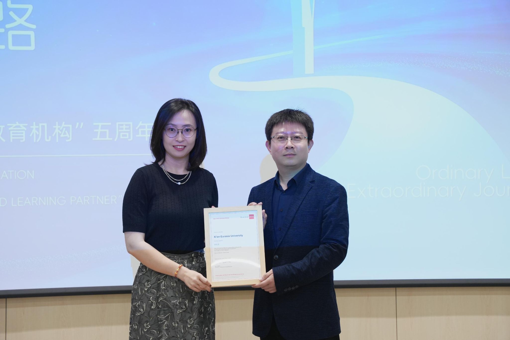 10月18日下午,“平凡之光,非凡之路” ACCA黄金级教育机构五周年庆典特此举办。庆典设置三场高质量主旨演讲,分别围绕国际教育资源联动、智能人才培养生态及院校特色模式展开。欧亚连续五年获评“ACCA黄金级教育机构”,本次庆典充分彰显了学校在商科国际化教育领域的标杆与领航地位,成功构建与国际接轨的财会人才培养体系,形成具有借鉴意义的“欧亚样本”。