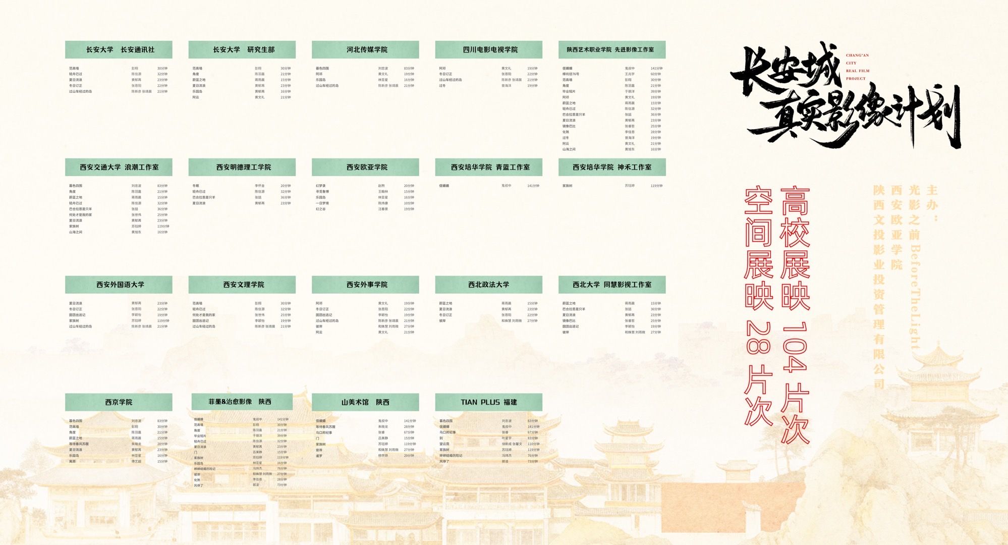 -2023.11 与西安欧亚学院、陕西文投影业投资管理有限公司合作,联合主办「2023长安城真实影像计划(2023CRFP)」在陕西8座城市、16所高校展映,完成陕西放映全覆盖