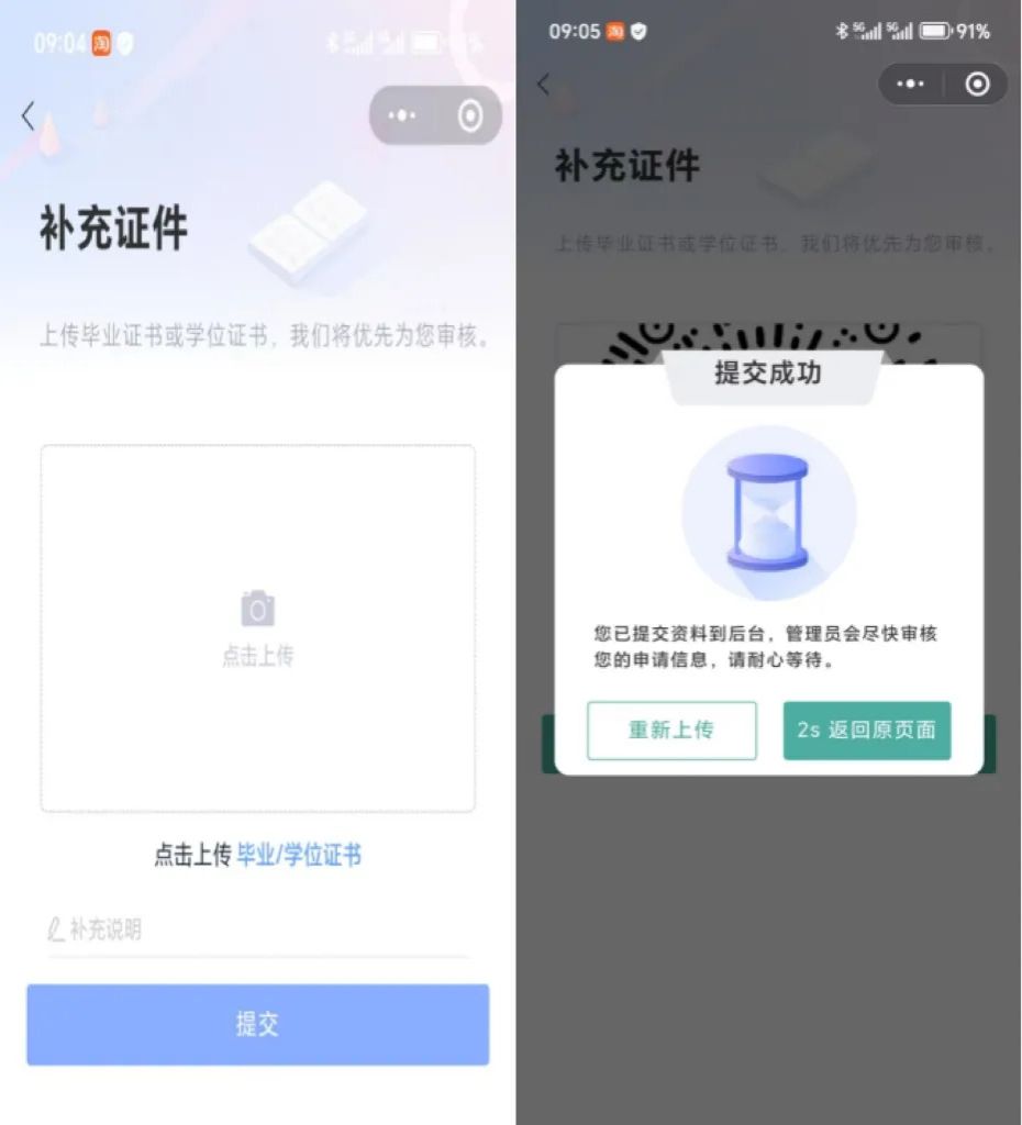 6.提交后请耐心等待管理员的审核,提交补充证件,管理员优先审核。